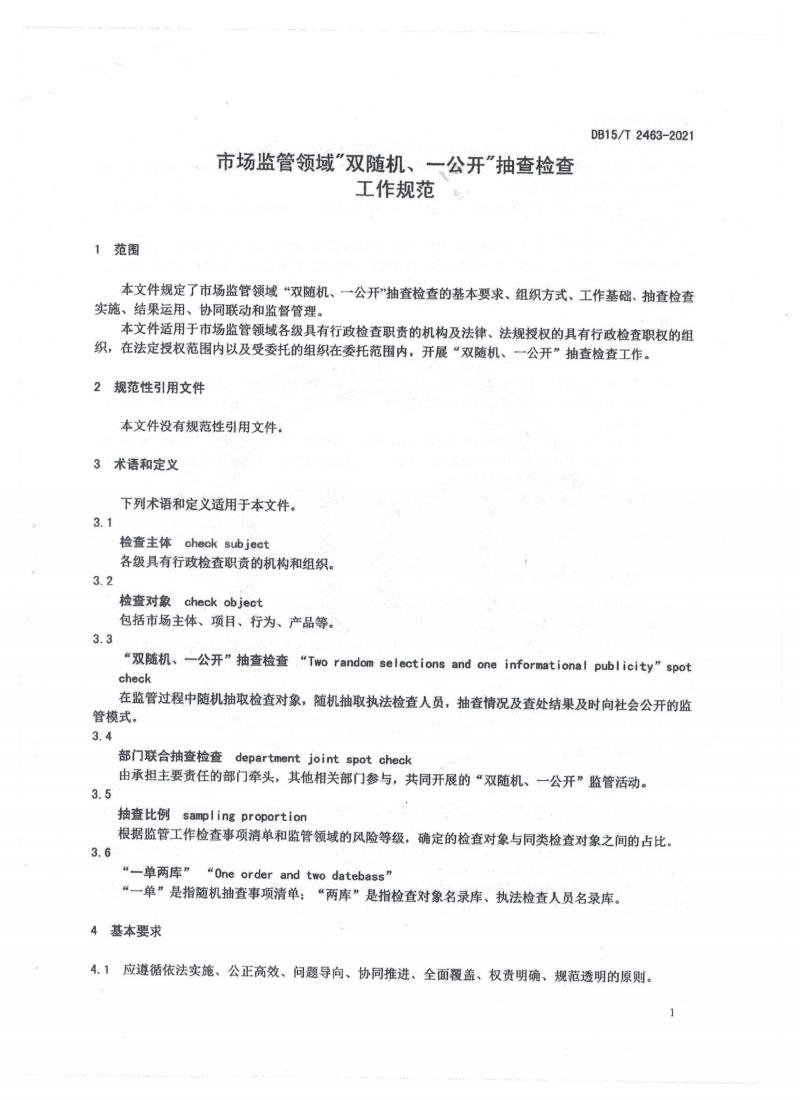 内蒙古自治区市场监管领域“双随机、一公开”抽查检查工作规范
